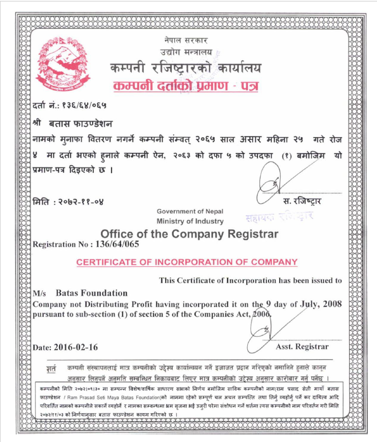 BATAS Foundation is an independent NGO aspire to build empowered society where everyone is united and committed to work for betterment. Foundation focus on education, training and been actively involved in post disaster management after 2015 earthquake.